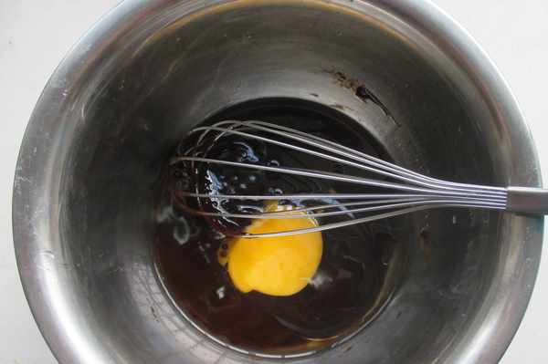 5.加入一個雞蛋。加雞蛋時,註意融化的糖水不要過熱。