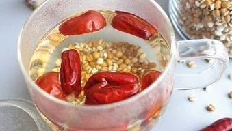 薏苡仁15克,綠茶3克。將薏苡仁搗碎,與綠茶共放入茶杯中,開水沖泡代茶飲。具有溫腎止遺的功效。常用於治療遺精早泄、陽痿不舉、性欲低下、心煩失眠等癥。