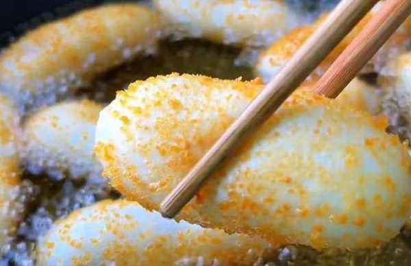 全部放入後,用筷子把它翻一面炸,要勤翻動,使它受熱均勻。總之要把它炸至四面金黃,表皮酥脆就可以出鍋啦。