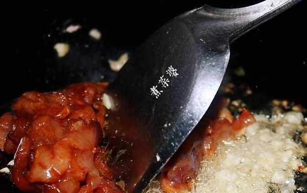 第四步:鍋內倒入適量油,燒熱,放入大蒜末爆出香味,接著倒入肉絲翻炒快速翻炒至變色。馬上倒入調好的醬汁,翻炒均勻稍煮2~3分鐘。待肉絲完全上色、沒有多餘的湯汁後,關火倒入盤中就可以瞭。