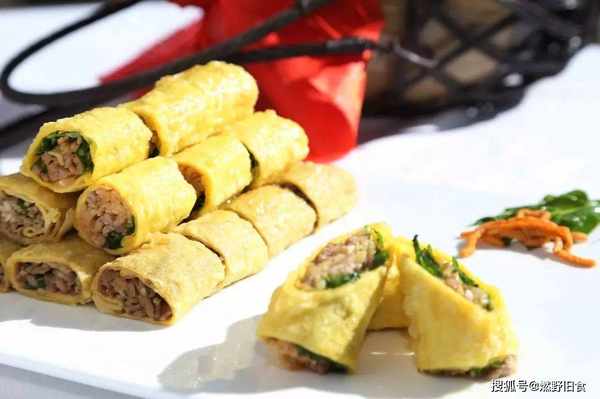 蛋皮裹上提前炒過的餡,兩邊封口再用淀粉水封成一個長條,下鍋炸。雞蛋皮炸後還帶著濃濃的蛋香氣,不能錯過。