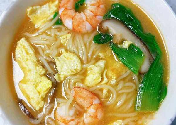 食材:面條 雞蛋 蝦仁 青菜 和香菇
