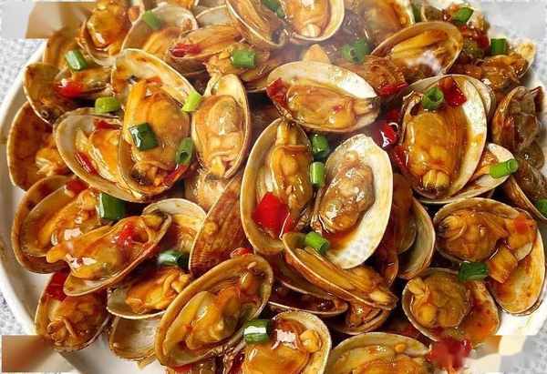 (2)鍋中倒入適量的清水,放入花甲,加入適量的食鹽、薑片、蔥段、料酒,焯水片刻,撈出來,過一遍涼水,瀝幹水分備用。