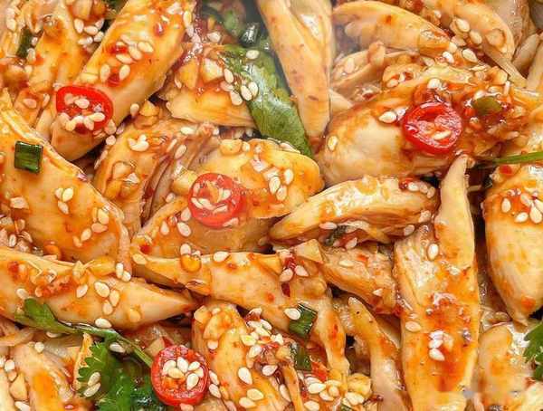 食材:雞胸肉一塊、黃瓜、香菜、小米辣