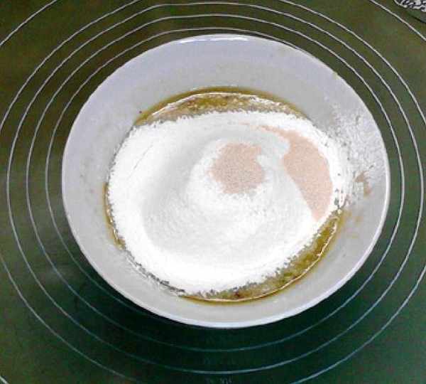 第4步、倒入面粉和幹酵母,
