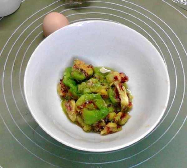 第2步、獼猴桃去皮,放入大碗搗成泥。