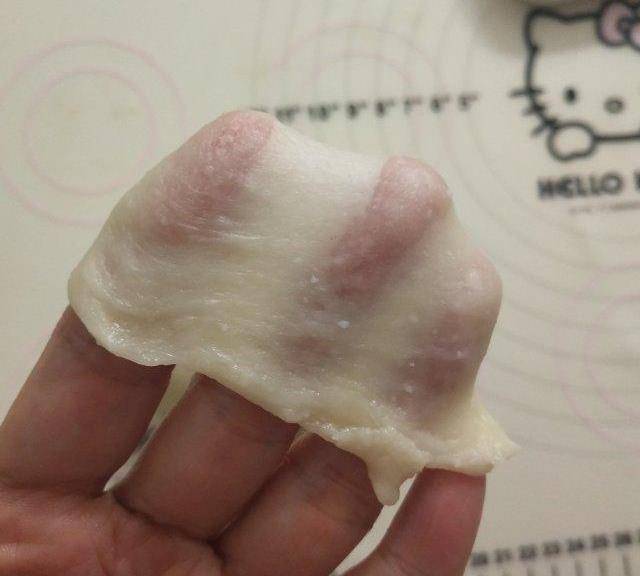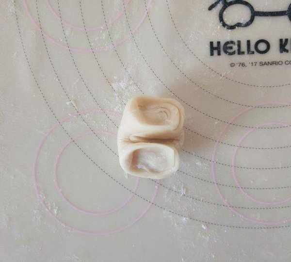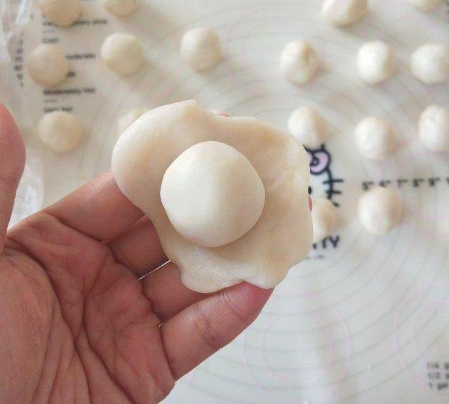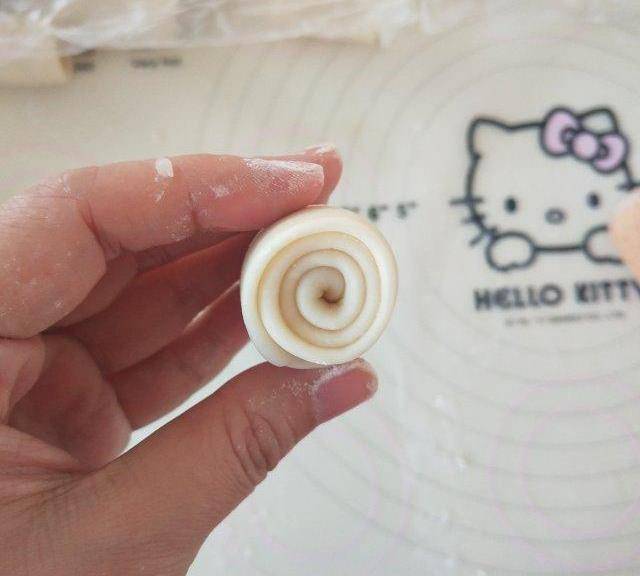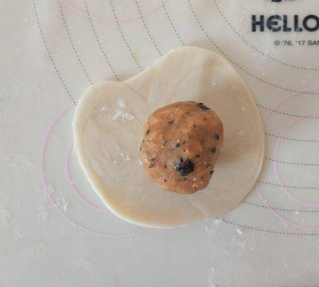 第12步、12.搟成圓片,包肉松餡,捏緊封口。