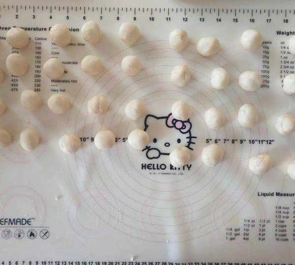 第6步、6.油皮,油酥分割成15克/個,約20個小球。