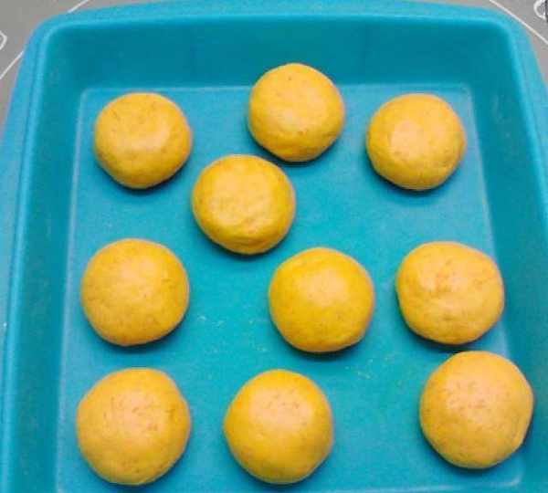 第6步、揉成軟硬適度的均勻面團(若南瓜泥較幹可以適量加水)。
