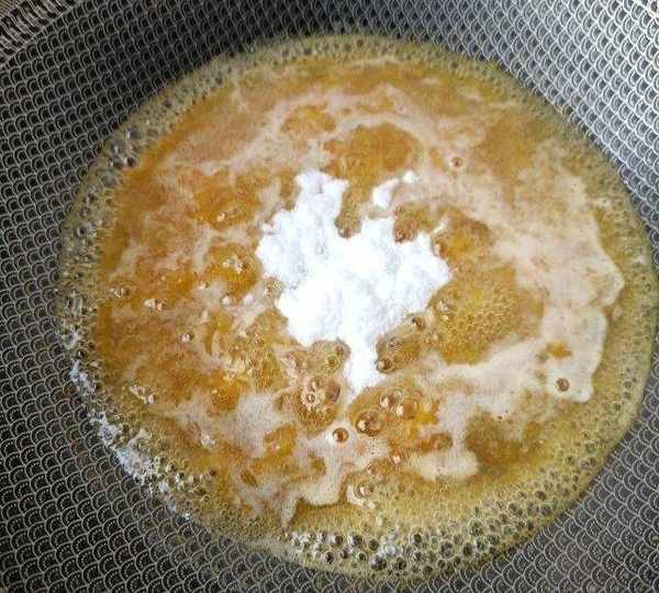 第9步、放白涼粉,拌勻煮開。