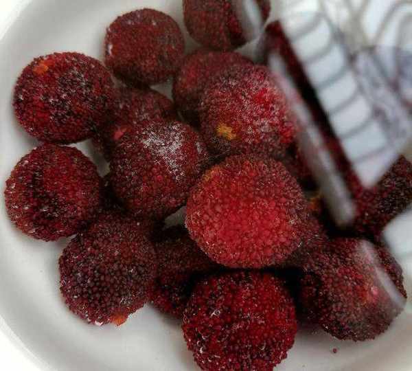 第1步、楊梅裡放食鹽,浸泡20分鐘。