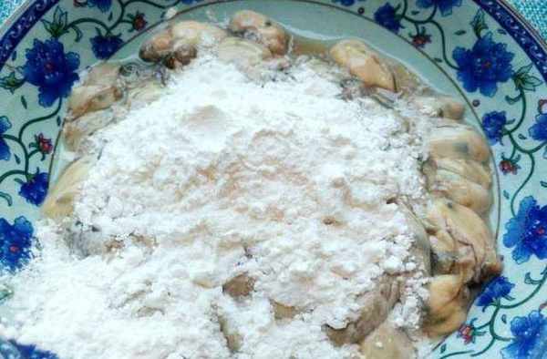 第二步:再在海蠣上,加地瓜粉,攪拌均勻。