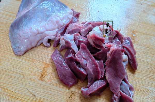 1、將豬心用刀切成小塊,對於一些不喜歡吃肥肉的小夥伴,可以選擇將邊邊角角的那些白色肥肉切去不要。