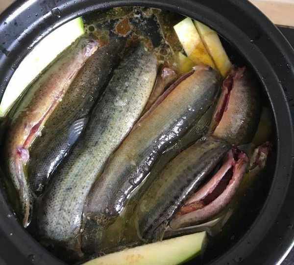 第6步、泥鰍下鍋,放少許料酒去腥,加適量水。