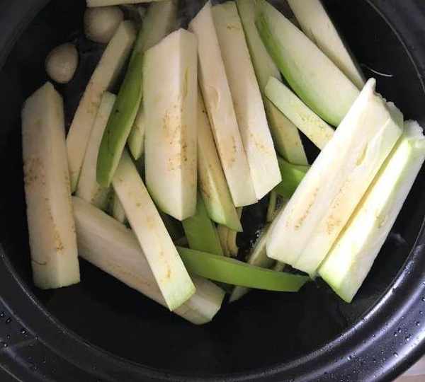 原料:泥鰍、茄子、蔥、食鹽、料酒、十三香、薑、蒜。