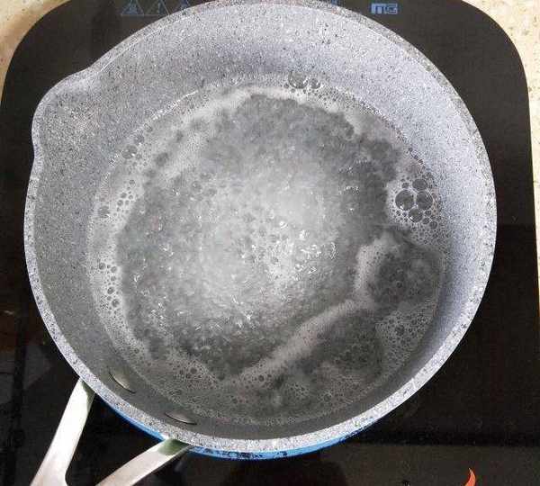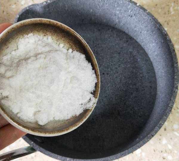第1步、小鍋裡放入500克清水,倒入20克白涼粉。
