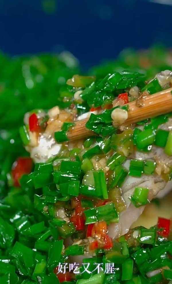 在撒上剩下的韭菜,用一勺熱油激發出香味,這樣做的涼拌鯽魚千面多姿,入口即化,學會瞭,全傢都誇你吃大廚。