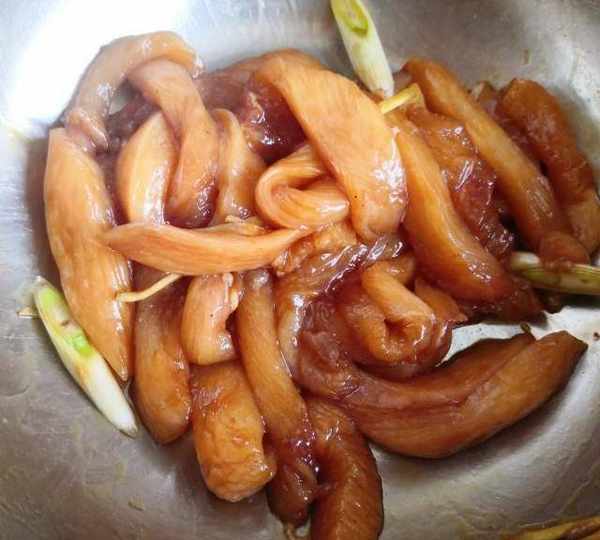 原料:雞胸肉、醬油、鹽、白胡椒粉、十三香、麻辣燒烤料、料酒、蔥、老抽、番茄醬、薑。