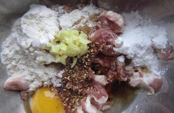 等到油溫升高以後,再一次將已經定型的肉片重新炸至金黃色,此時即可食用瞭,如果你想蒸著吃,那麼就把炸好的肉放入碗中,放蒜,蔥,桂皮,香葉,料酒,花椒粉,醬油,然後放入蒸鍋中蒸40分鐘即可。