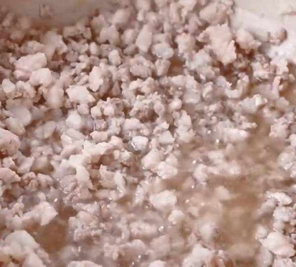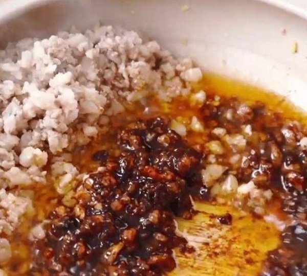 第2步、倒入肉末,翻炒至變色,加入料酒去除腥味。