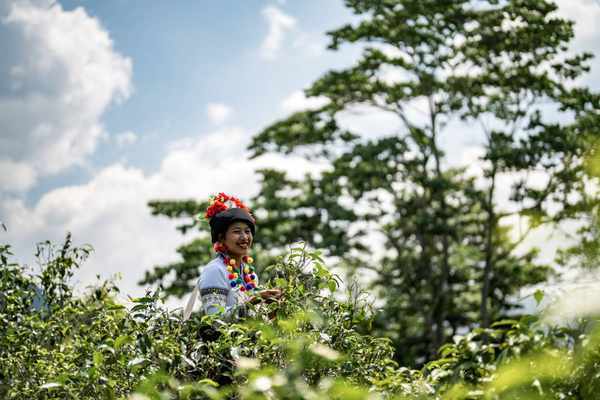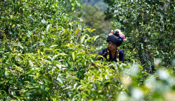 這是2023年5月17日,中國雲南省勐海縣佈朗山佈朗族鄉老曼峨寨的茶農在采茶。新華社記者 李木子 攝