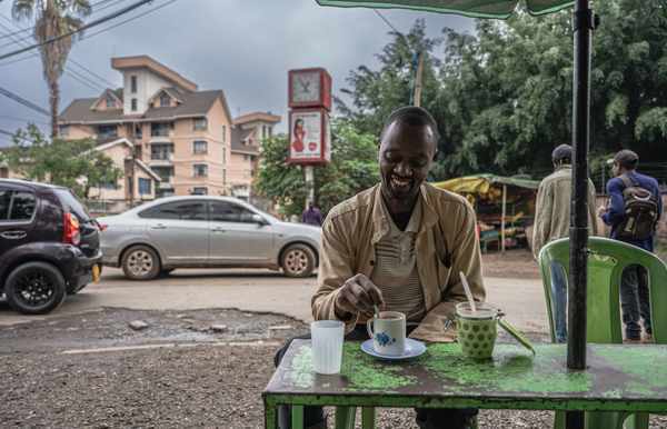 這是2023年5月17日,市民在肯尼亞內羅畢街邊飲用奶茶。新華社記者 王冠森 攝