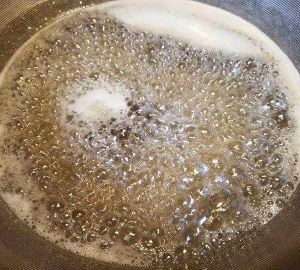 第9步、鍋放水把糖煮開。(柚子皮:糖:水的比例是1:1:0.5。)