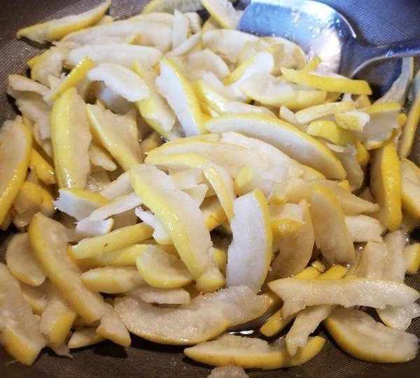 第10步、放入柚子皮炒。