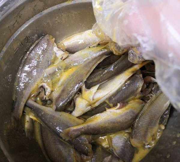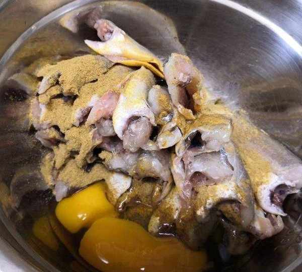 原料:小黃魚、雞蛋、十三香、面粉、鹽。