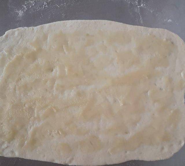 第8步、均勻地抹上油酥,從上往下卷起來。