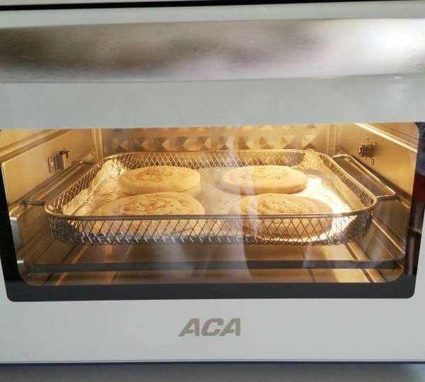 第12步、ACA空氣炸烤箱選空氣炸功能,溫度190度,10分鐘時餅翻面,再烤4分鐘,如果喜歡餅的顏色深點,可以設置200度,加烤1分鐘。