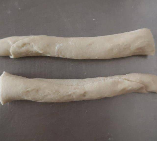 第9步、切成2段,捏好封口。