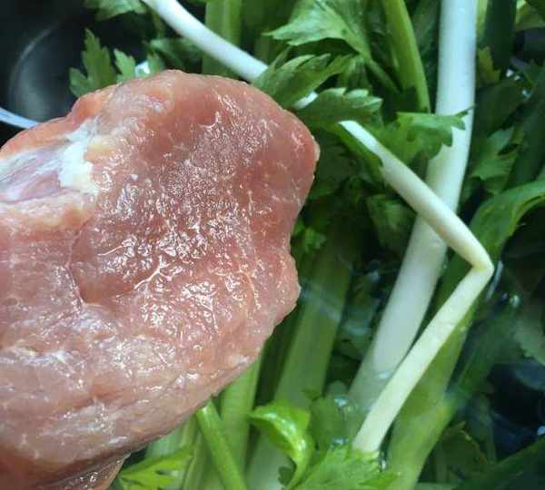 第2步、芹菜,大蔥和豬肉洗凈控水。