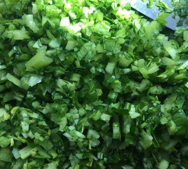 第6步、放入芹菜和大蔥碎攪拌均勻。