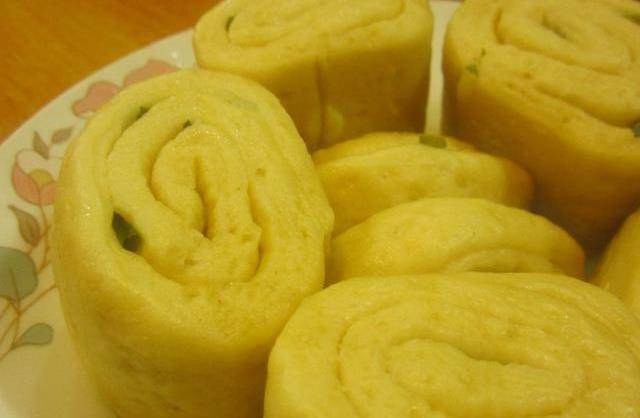 玉米花卷:把玉米粉、面粉、酵母粉、水一起加入把他揉成面團,待面團發酵比之前大一倍就可以開始做瞭。把發酵好的面團用搟面杖搟成長方體,在上面均勻的塗上一層薄薄的油,撒上鹽和蔥花,然後卷起來,切成段就做好瞭。上鍋蒸,水開蒸15分鐘即可等待享用美食啦!