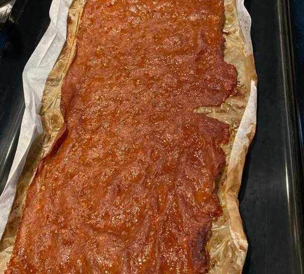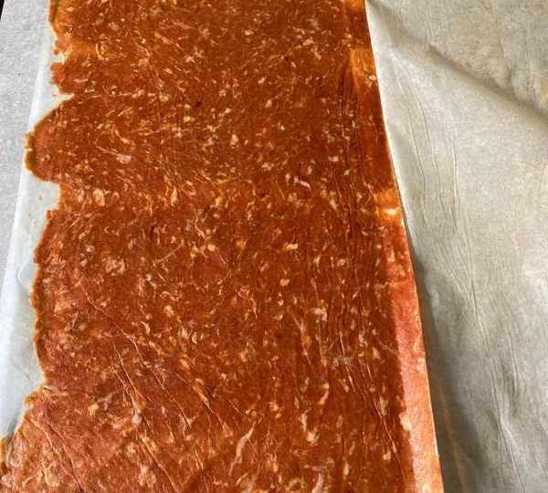 第9步、蓋上另外一層油紙,把肉餡搟開搟薄。