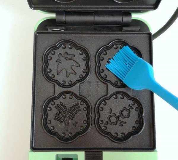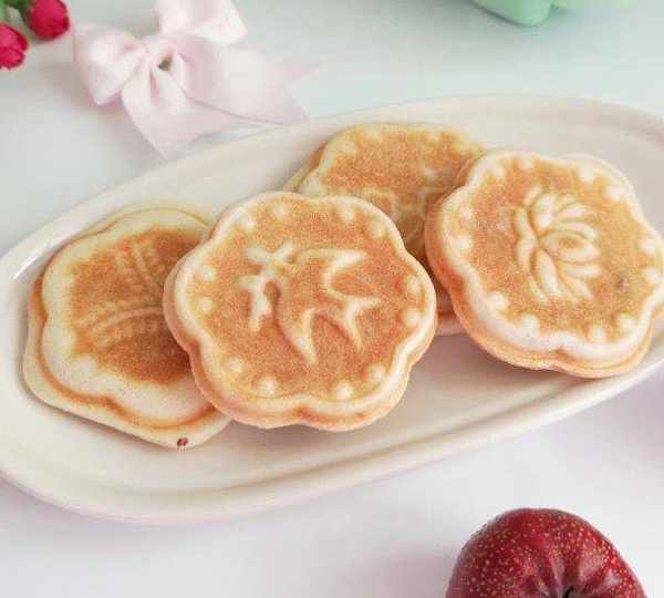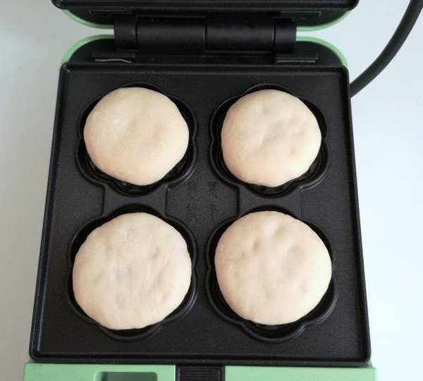 紅豆是提前泡水,用高壓鍋煮熟的。面餅做好後,不用等醒發可以直接放入三明治機中,這樣花紋更清晰。