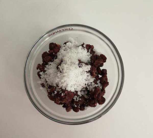 第5步、紅豆餡和白糖攪拌均勻備用。