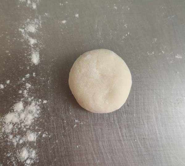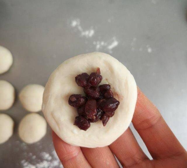 第7步、搟開一個面團,包入紅豆餡,收好封口。
