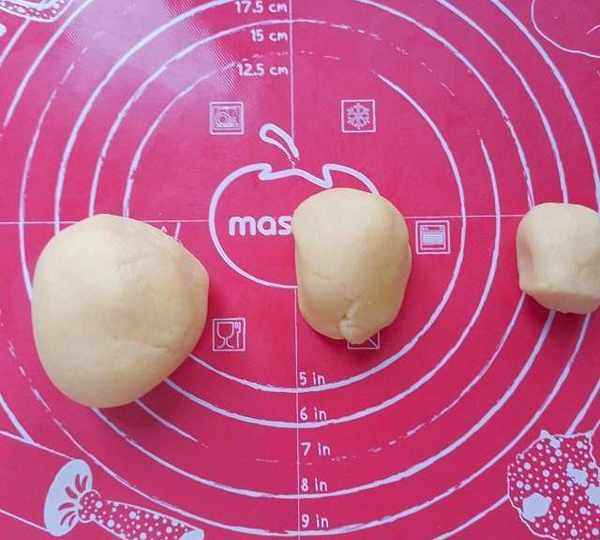 第7步、分成108克,60克和12克的三個面團。