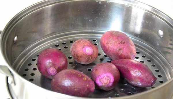 1、紫薯洗幹凈,去掉頭,上鍋蒸熟。