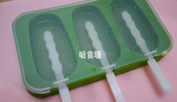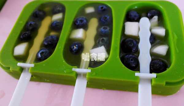 2、 第一次冷凍的目的是為瞭使冰層凍住,水果的位置都在冰棍的中間,看起來更漂亮。