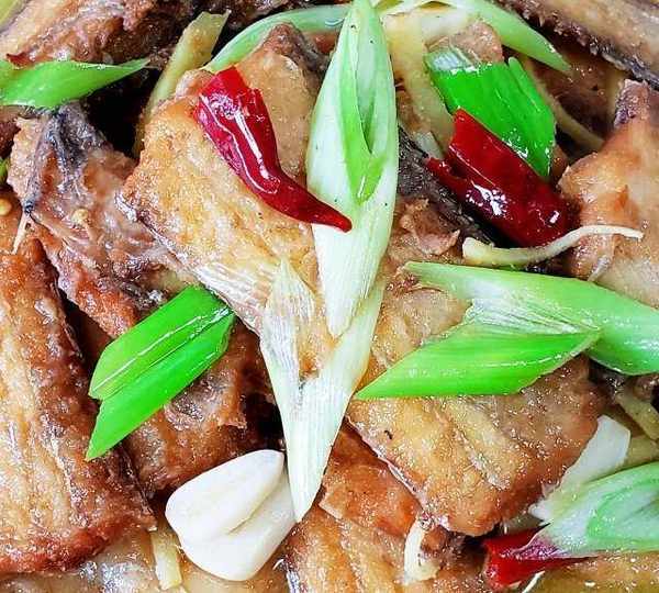 原料:帶魚、生薑、蔥、蒜、幹辣椒、味達美臻品料酒、味達美臻品蠔油、六月鮮特級醬油、紅燒醬油、陳醋、白糖、白胡椒粉、鹽、淀粉。