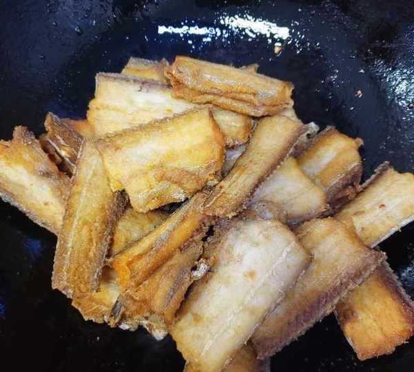 第3步、鍋中加少許油,放入炸好的帶魚,加入沒過帶魚的清水,加1勺料酒,1勺醬油,1勺蠔油。