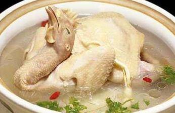 制作:10隻固始老母雞宰殺去凈內臟。黃枝子(也稱為黃梔子,一種中藥,色黃,上色效果極佳)150克入10斤沸水中浸泡15分鐘,至水變成橘黃色,自然晾涼後,放入薑塊250克,再放入治凈的整雞10隻浸泡1小時,使雞皮變成金黃色,撈出自然晾涼,在通風處晾12小時使雞皮變緊,放入保鮮冰箱保存。