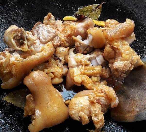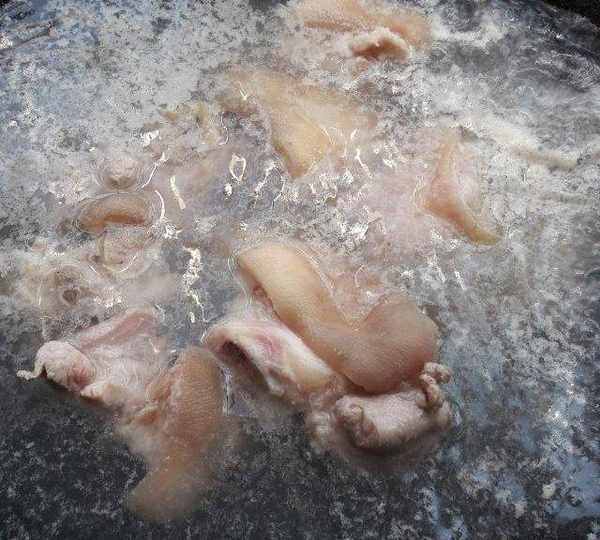 第2步、過過水的豬腳夾出來。