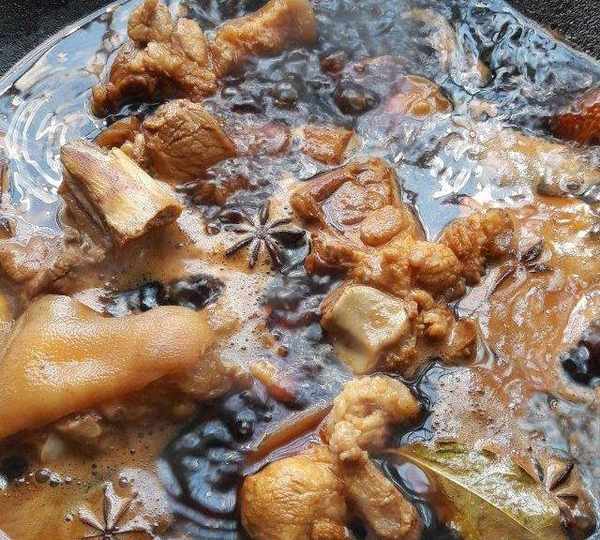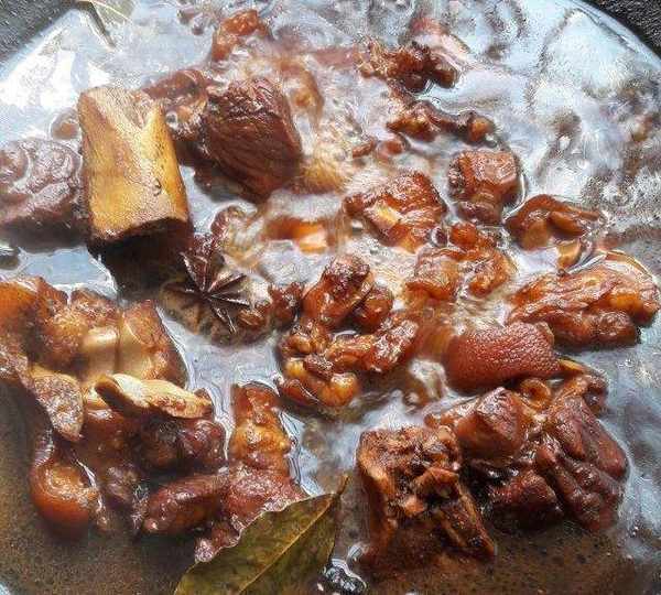 第11步、偶爾開鍋翻一下,註意下手輕點,要不然翻爛碎瞭。燉到自己喜歡的軟爛度。快好時可以把八角桂皮等香料以及薑挑出來扔掉。
