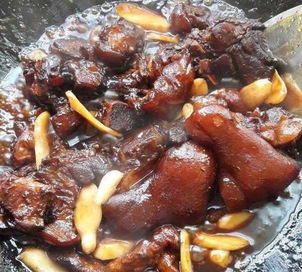 買肉時看豬腳好,沒有太多肥肉瘦肉也會買半個,做糖醋味,燉爛爛的,老少咸宜。