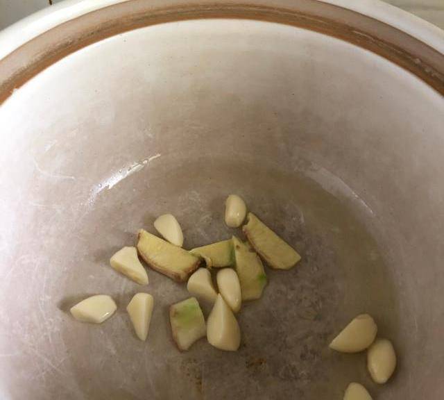 第4步、砂鍋內倒少許的油爆香薑蒜。