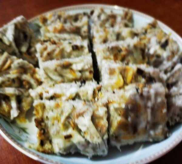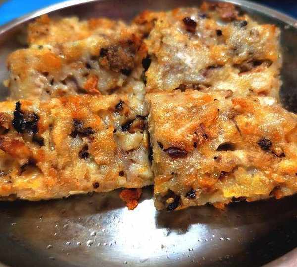 第7步、中火蒸40分鐘,涼後切片,切塊。